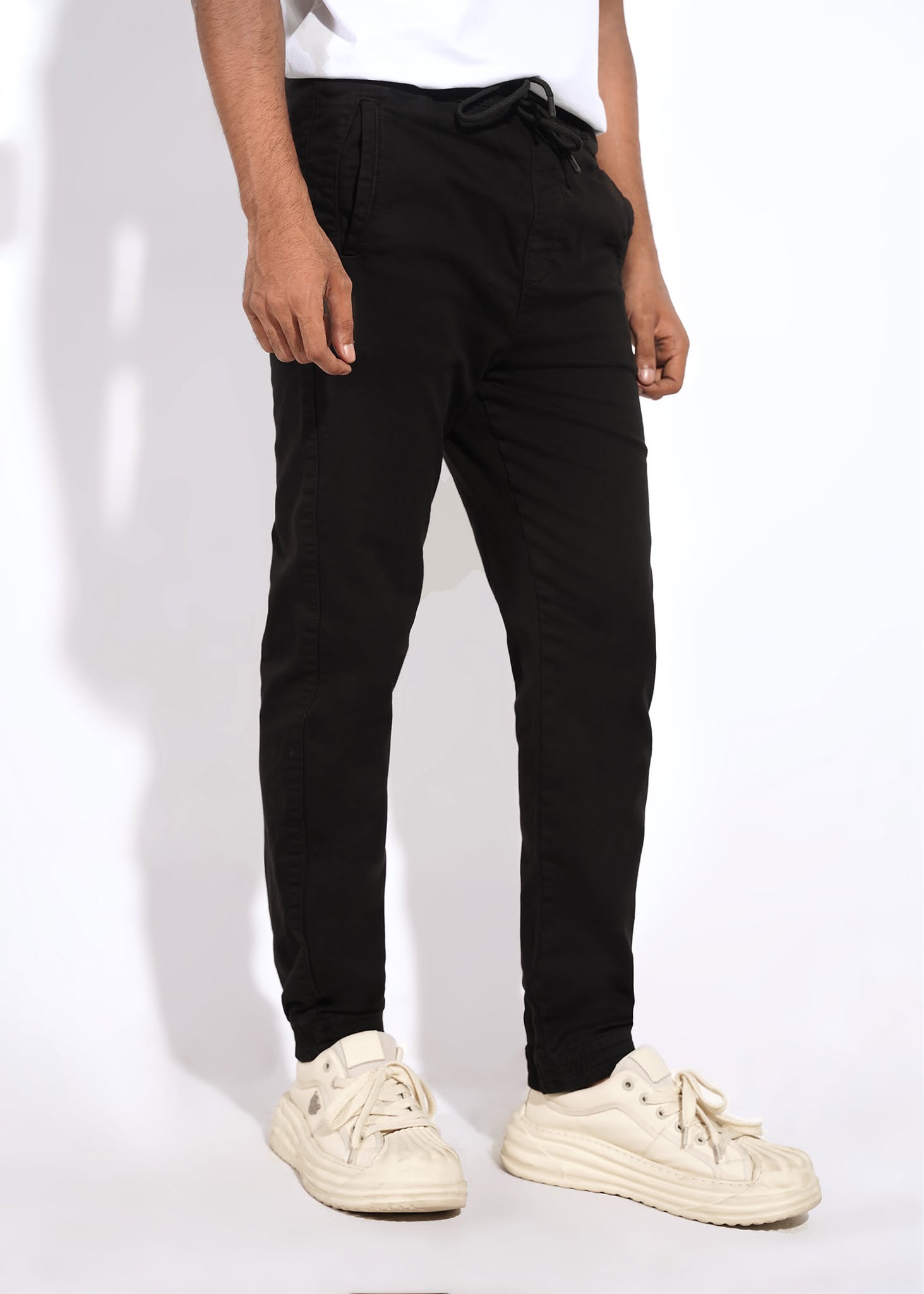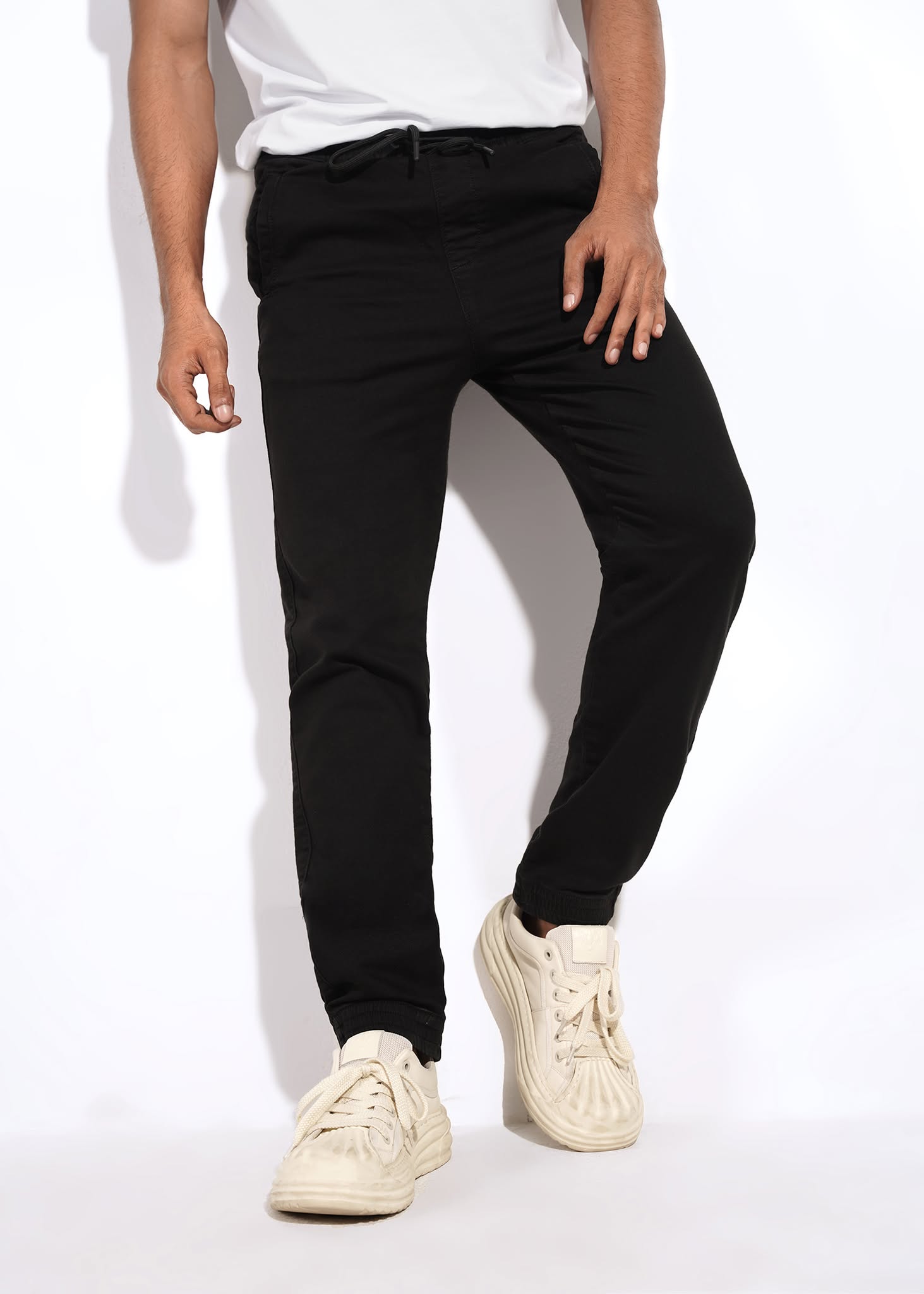 Black color slim-fit jeans. Five pockets. Faded effect. Zip fly and button fastening on the front