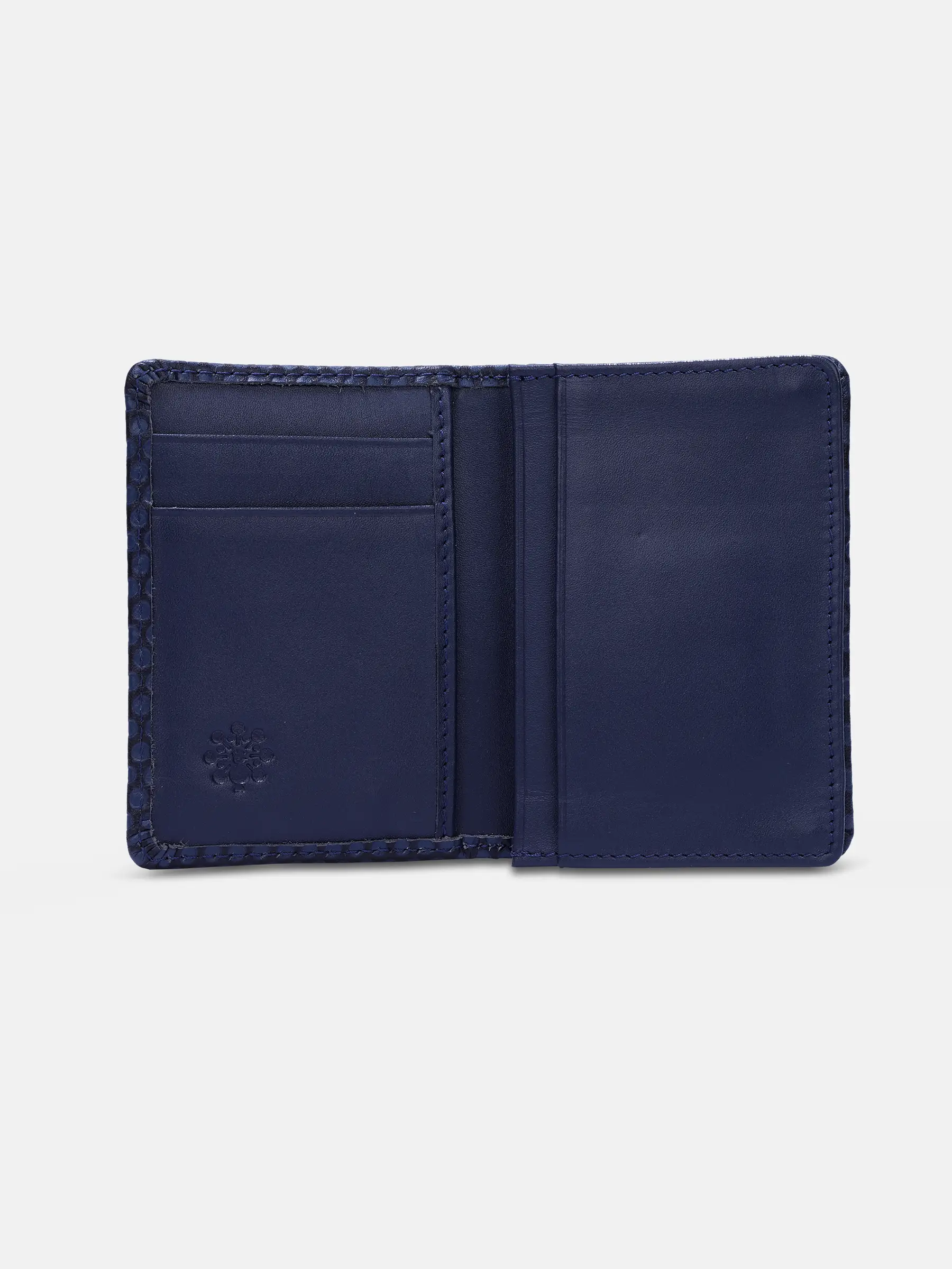 Burgundy flap genuine leather card holder with one chamber for cards.