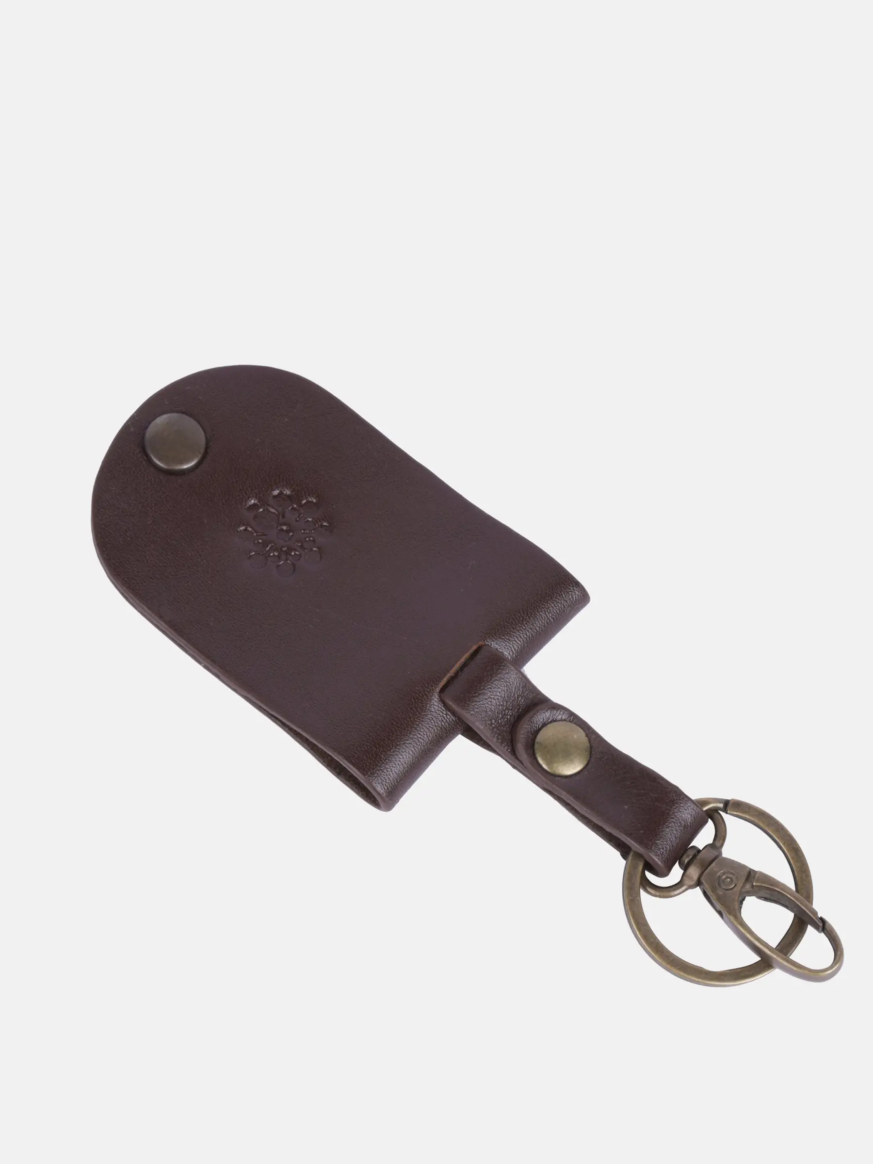 Chocolate genuine leather U shape key ring with antique colour metal ring.
