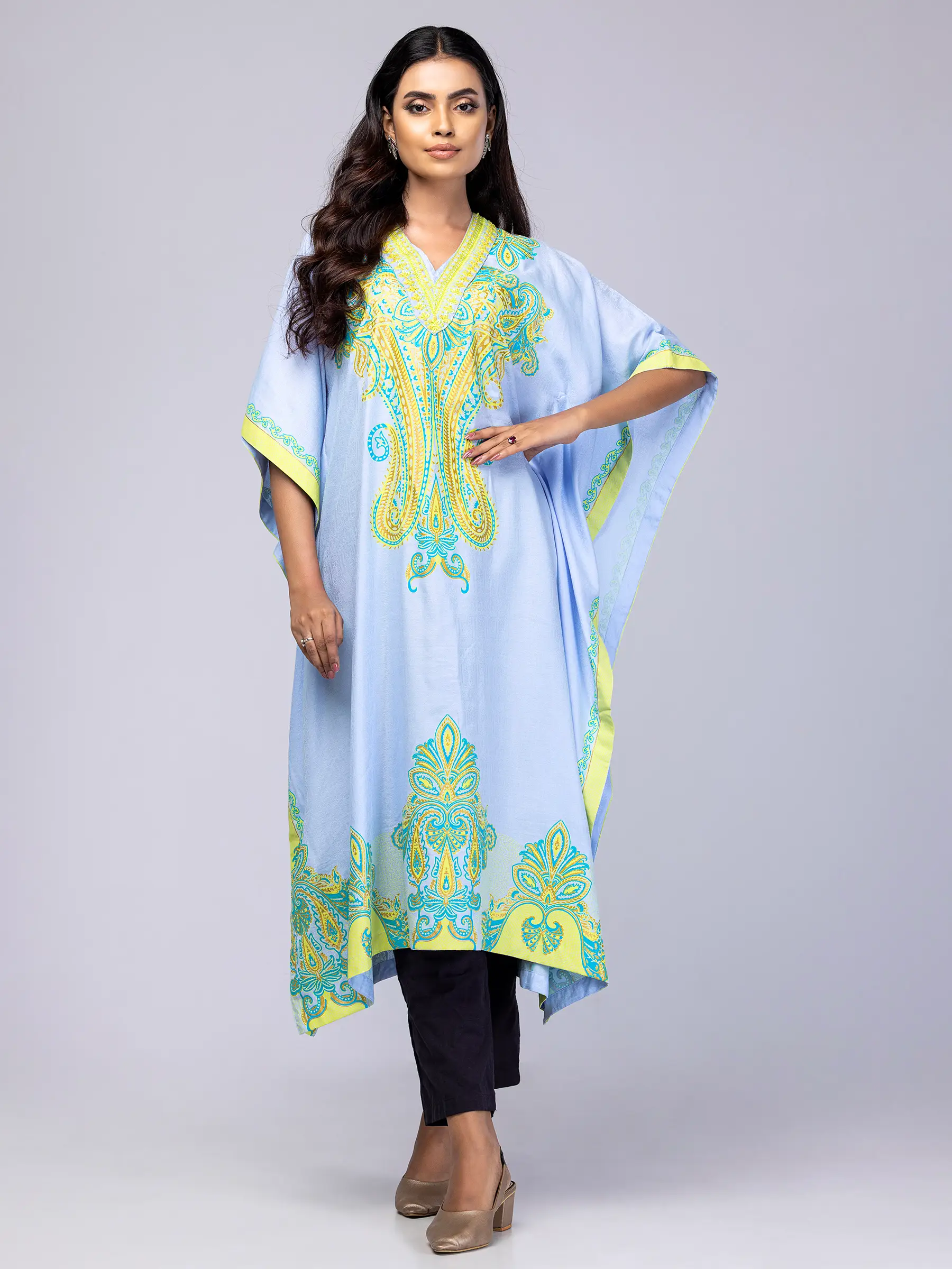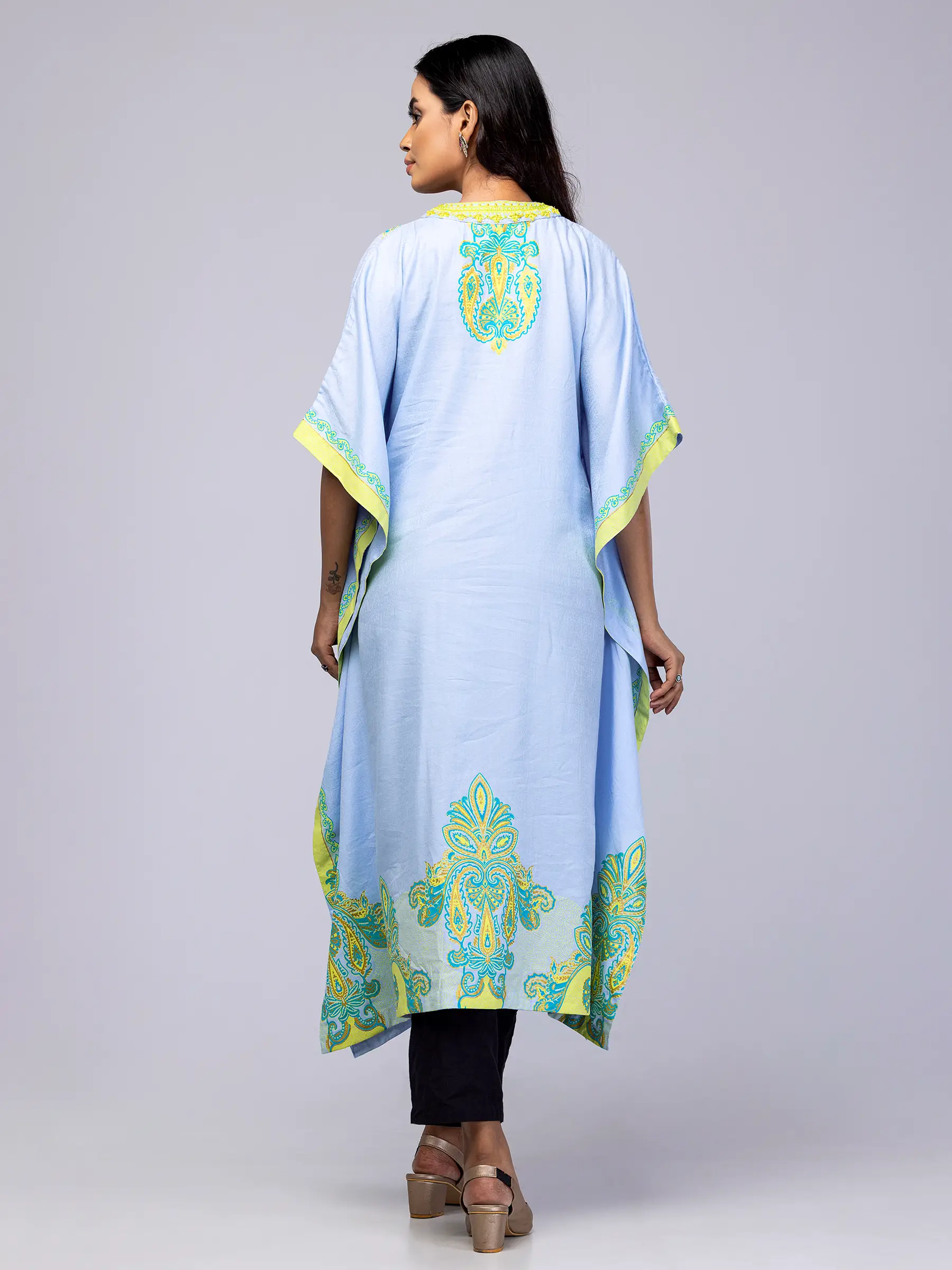 Yellow Ochre Printed and Arri Embroidered Mixed Viscose Kurta