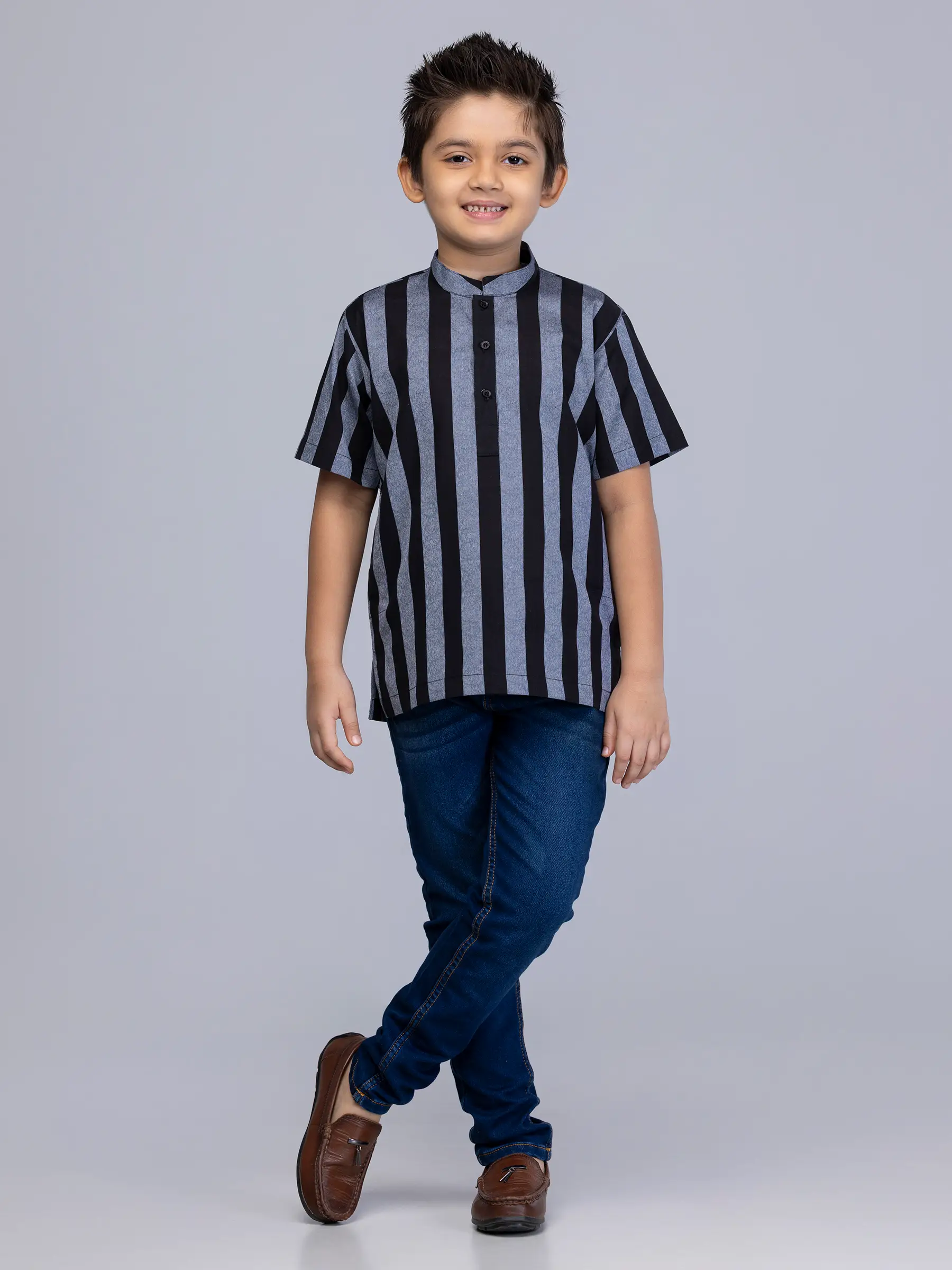 Blue-grey and black striped cotton fatua.