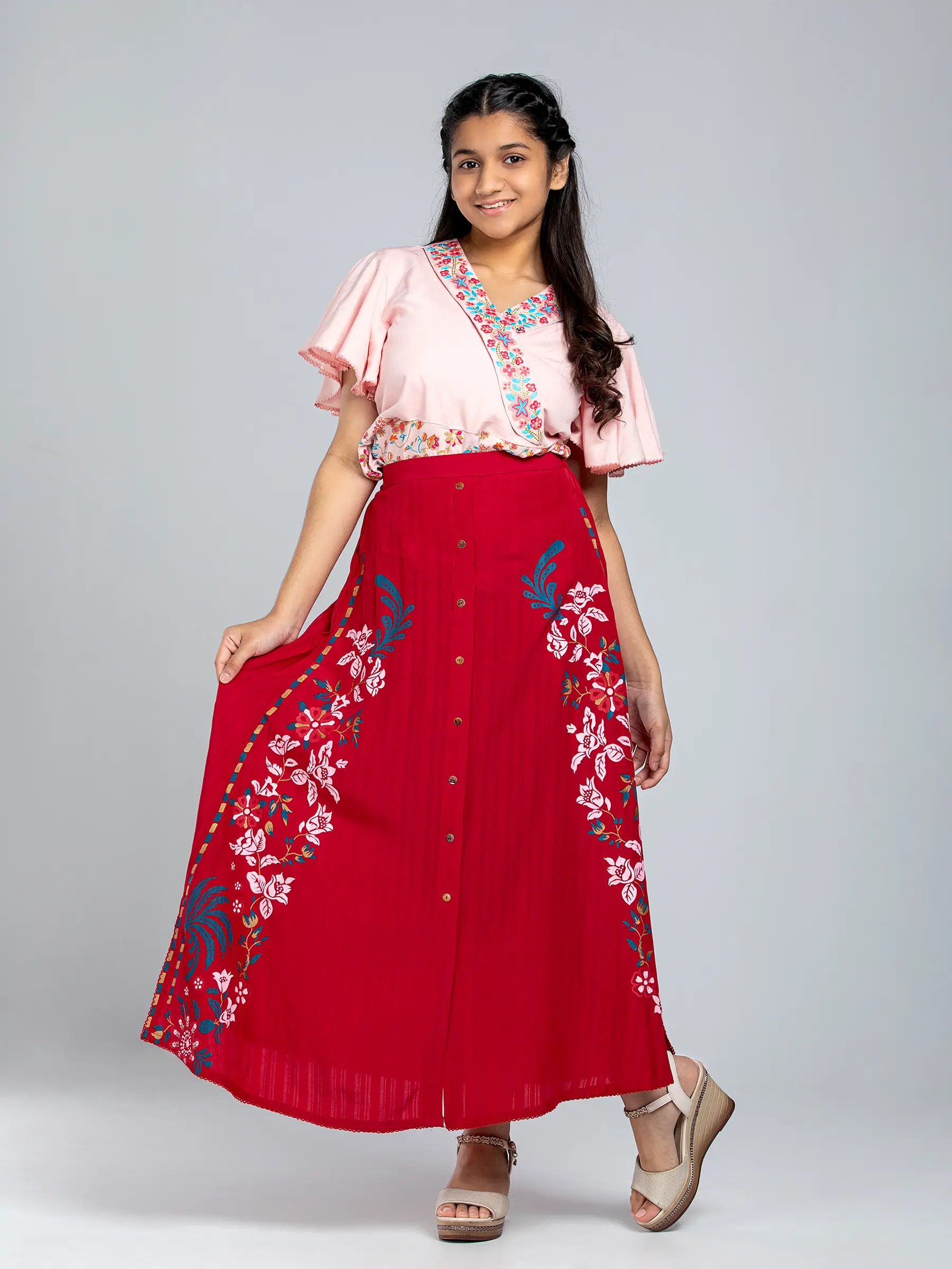 White/Yellow Printed and Embroidered Linen Ghagra Choli Set